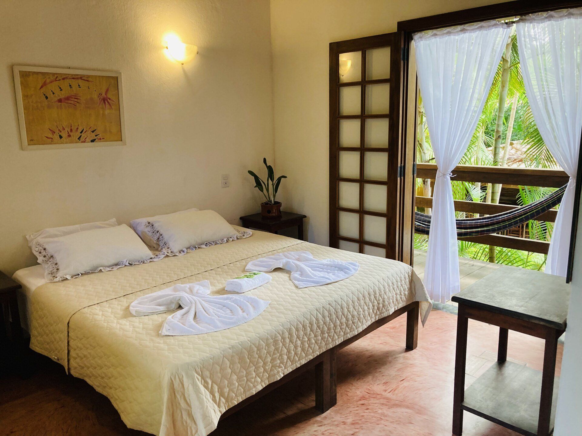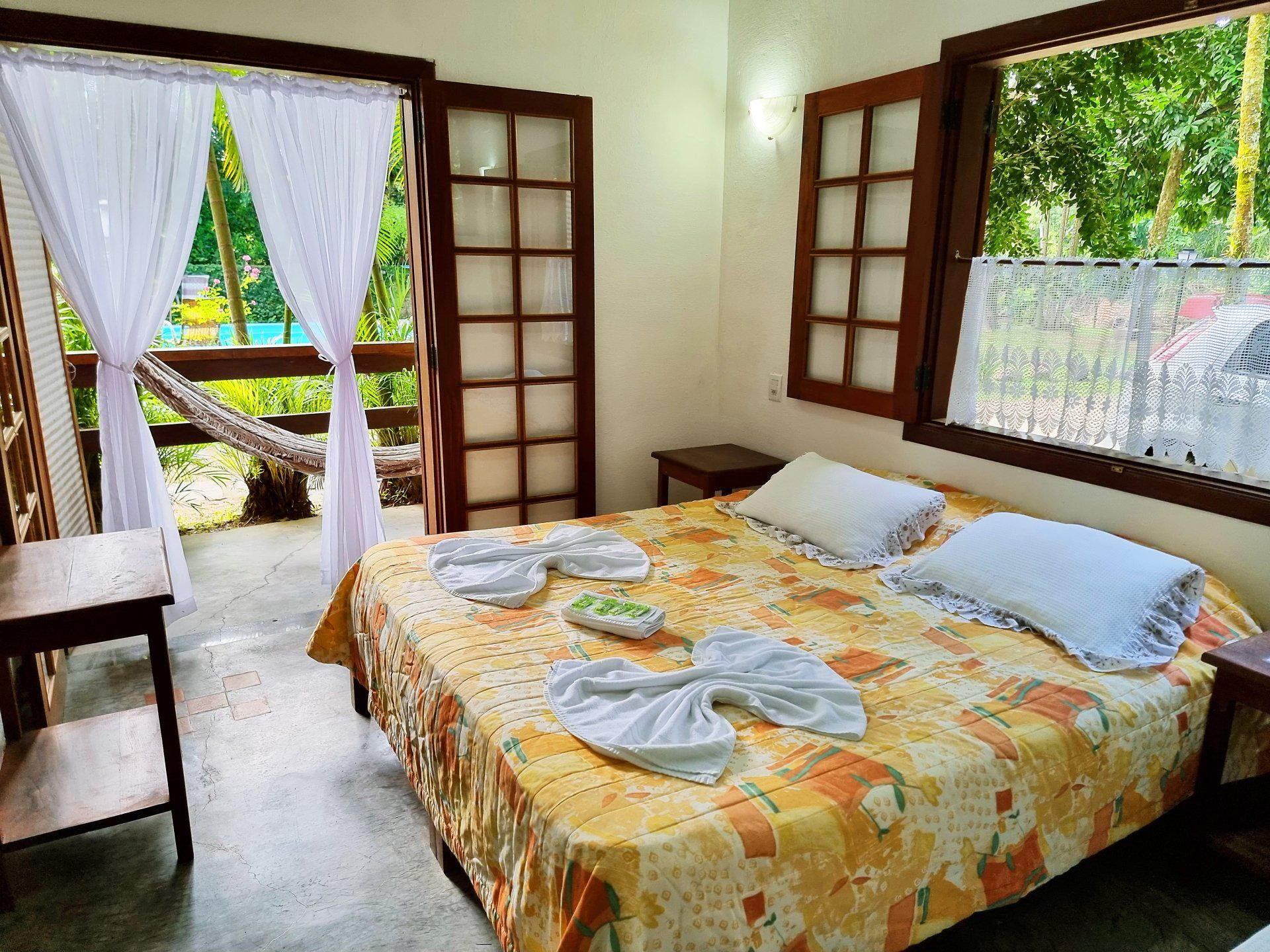 Temos suítes amplas e arejadas com cama king size e varanda com rede.
